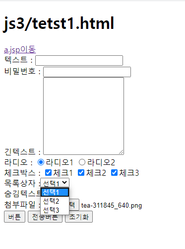 //목록상자는 여러개를 한번에 보고싶다면 multiple을 사용하고 목록의 갯수만큼 size 선언