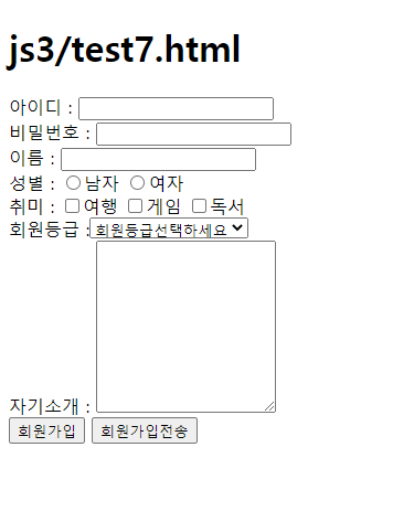 자기소개 : <textarea name="intro" rows="10" cols="20"></textarea><br>