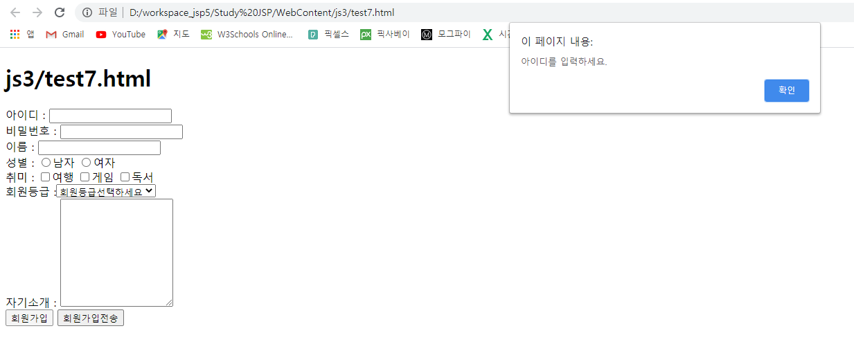 창에서 입력 가능한 곳에 입력이 안됐을 시에 메시지를 띄우고 포커스를 맞추고 다 채웠기에